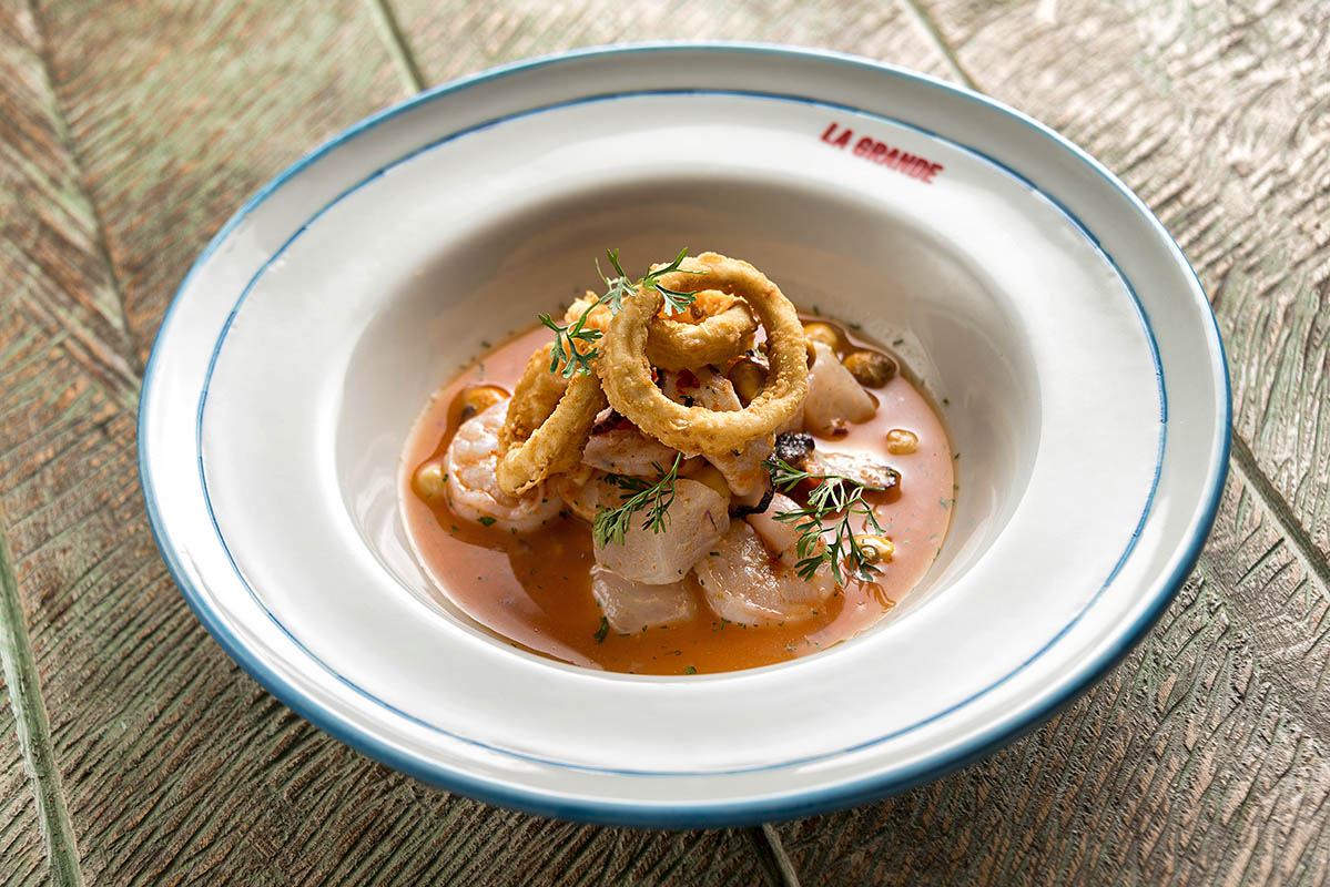 La Grande’s concept is fascinating: a “cevicheria with a cantina vibe” celebrating the coastal flavors of Peru, Mexico, and Colombia. My creative challenge was to capture this triple identity in every dish. I focused on telling the story of each coast—the bright freshness of Peruvian ceviche, the bold spirit of Mexican tacos, and the rich tradition of the Colombian sea. It was all about uniting these worlds into an impeccable presentation that invites you to share and enjoy.