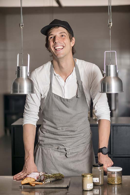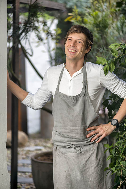 Belgian chef Klaas de Meulder, portrayed in his creative workspace, exudes authenticity and technical mastery. Controlled lighting enhances textures and neutral tones, while his relaxed posture and genuine expression convey passion, craftsmanship, and joy for cooking. An image that harmonizes photographic precision with creative sensitivity. Chef Klaas de Meulder is known for his innovative approach to modern European cuisine, where he combines seasonal ingredients with artistic presentation, seeking a balance between tradition and avant-garde. His dishes often reflect meticulous technique and respect for raw materials, earning him recognition for creativity and excellence. Editorial for Semana Cocina Magazine.